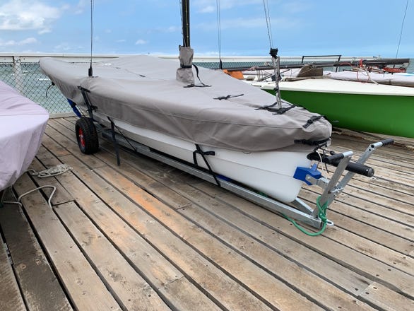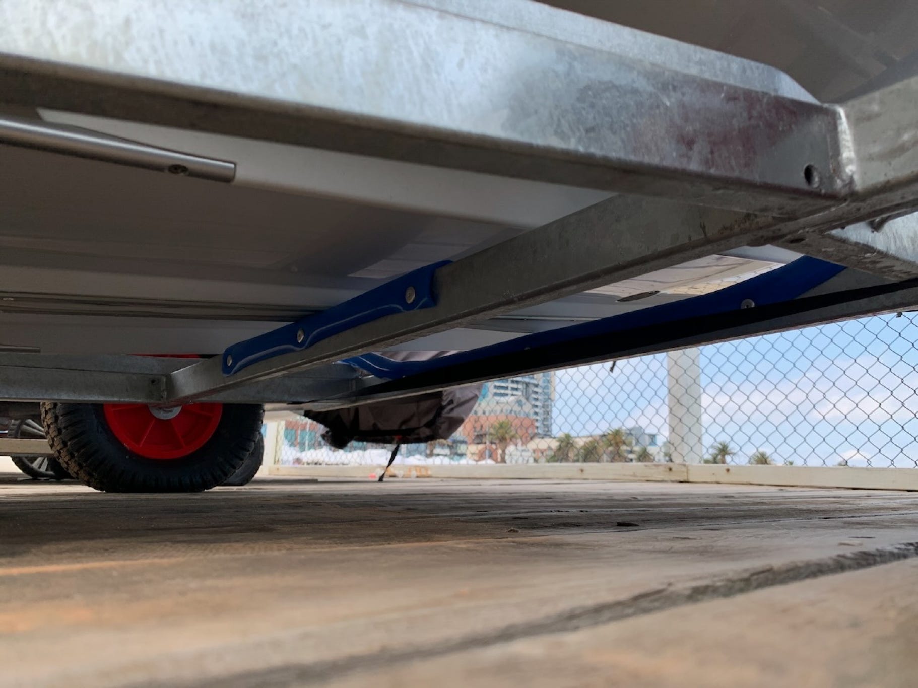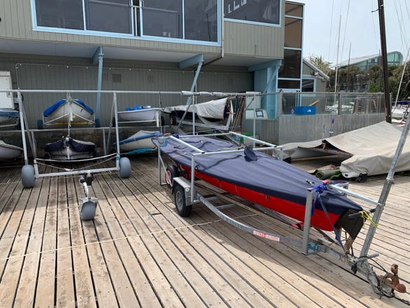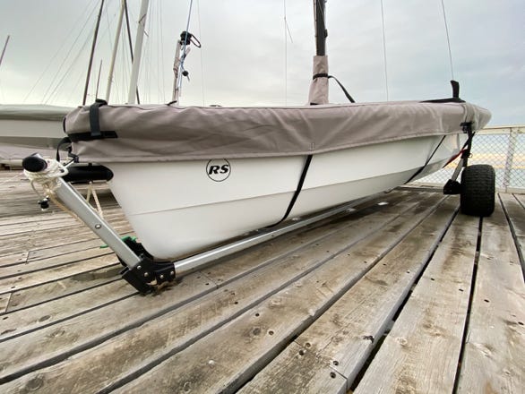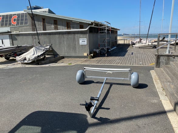 With balloon wheels! That looked like it might be the solution. It’s rated to over 220kg (enough for a fully rigged RS Quest), dimensions are perfect, and the caster wheel, well with that one could push the boat across the sand with a single finger!