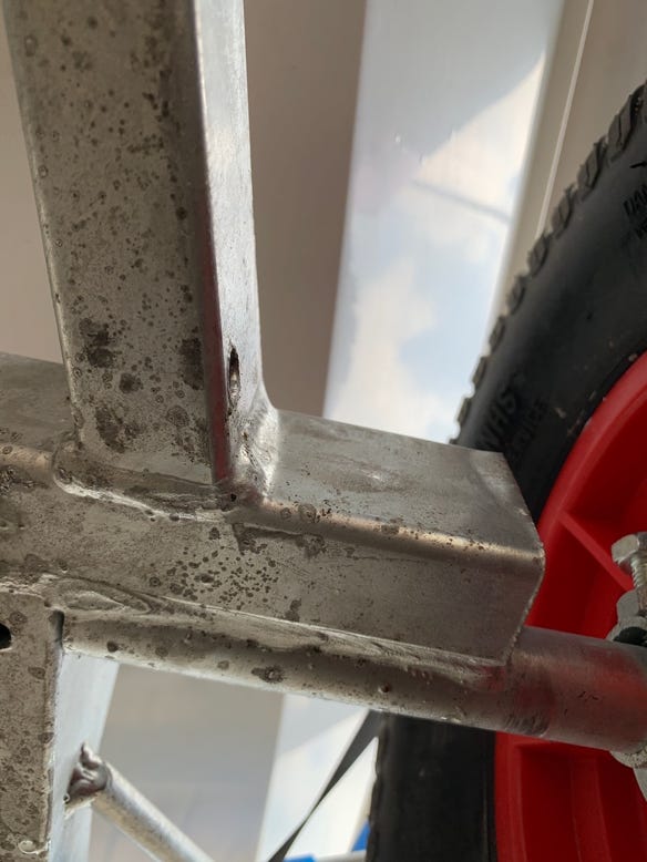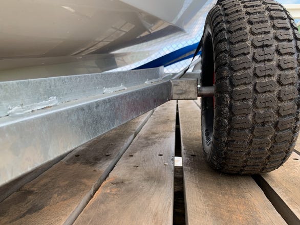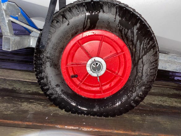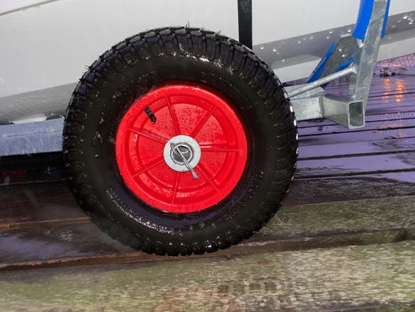 The RS supplied dolly, even with the bigger wheels is heavy. It’s very robust, but it feels like it’s nearly the weight of the boat. I struggle dragging the trailer alone over those 200m. And that is with the big wheels on the axle adaptors!